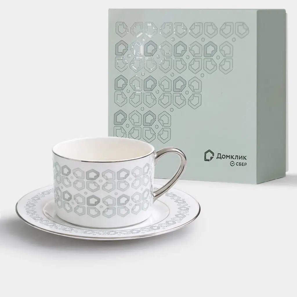 Элегантная чайная пара с графичным орнаментом и минималистичным дизайном, который впишется в любой интерьер. Объем чашки: 250 мл; диаметр блюдца: 15,5 см. Произведено в Китае.